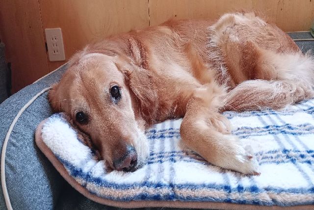 繫殖引退犬のゴールデンレトリバー、バロンです。繁殖能力が衰えてきたためブリーダーより飼育放棄されました。愛犬本舗の看板犬として皆様のお越しをお待ちしております。